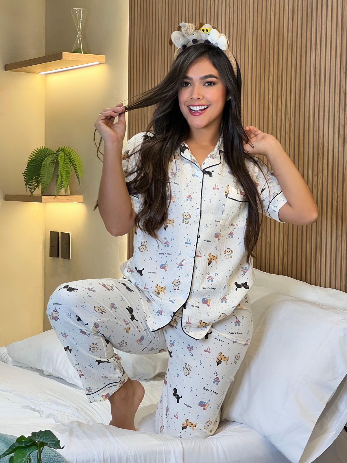 Puppy Love – Pijama 3 Piezas en Chalis Crepé