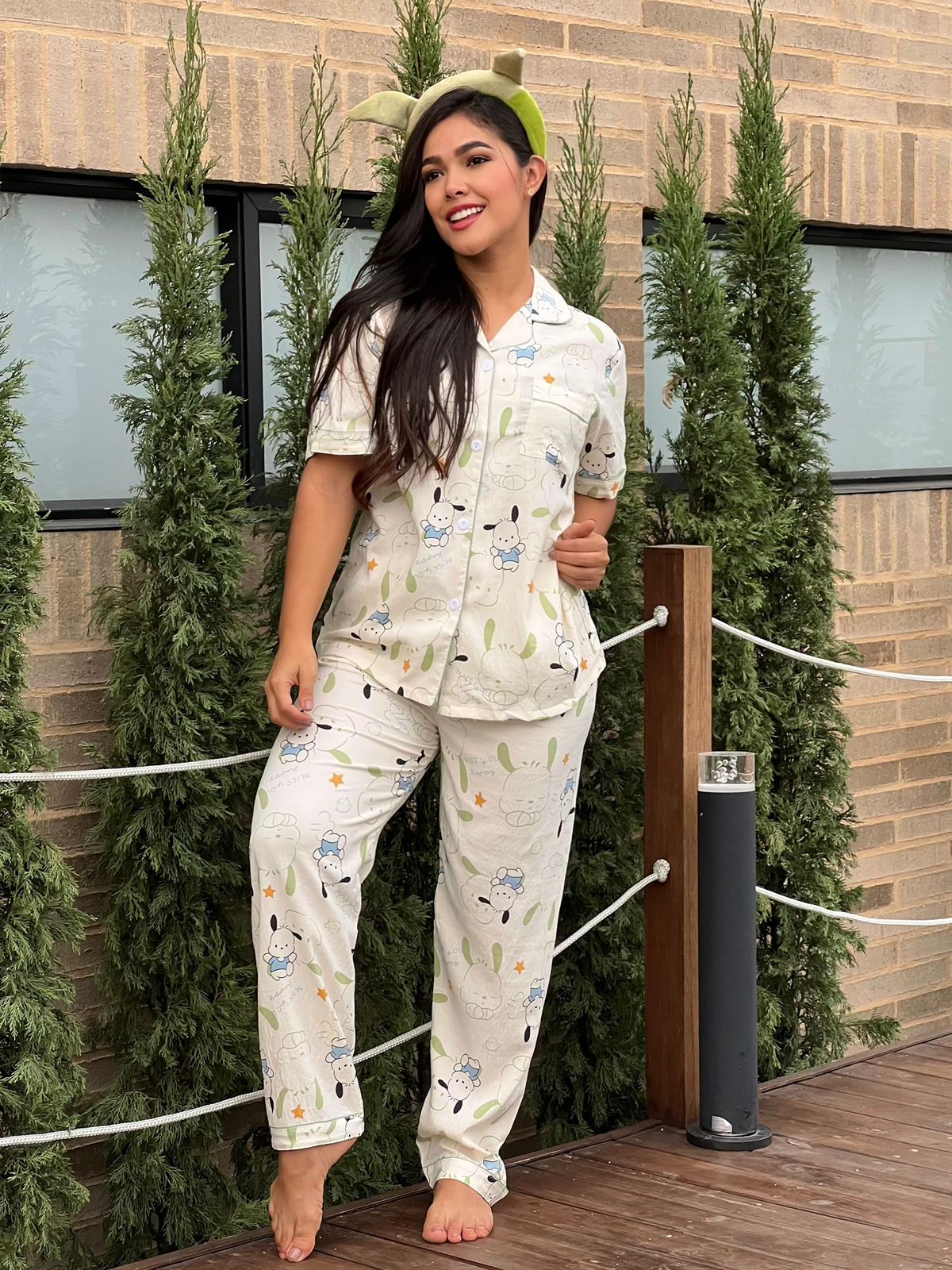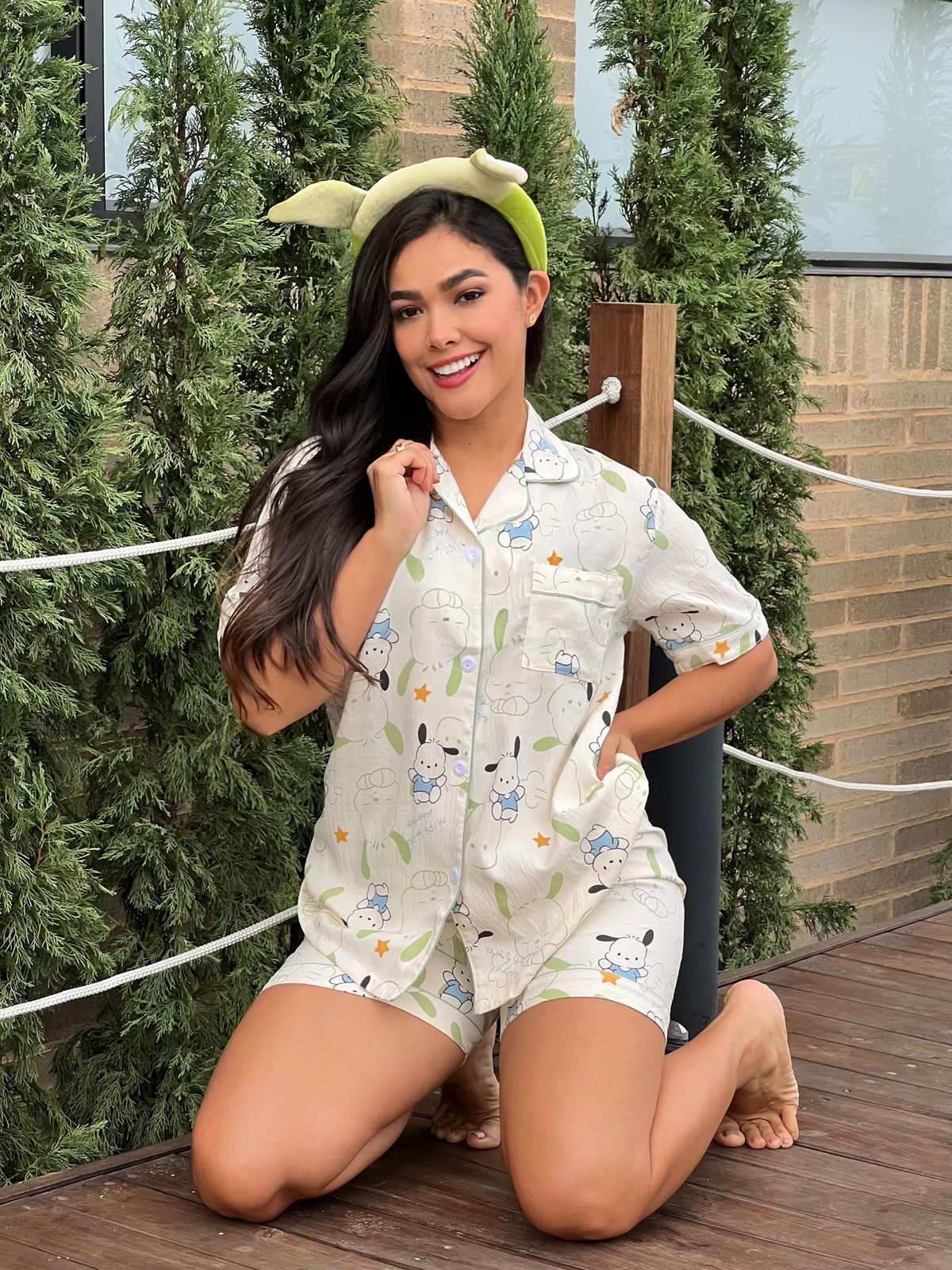 ✨ Descubre la comodidad y el encanto de nuestra pijama de 3 piezas en chalis crepé, diseñada para mujeres que buscan descansar con estilo y frescura. Su estampado divertido y delicado aporta un toque juvenil y alegre a tus noches y días de relax.